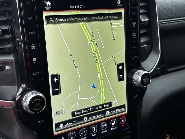 LaFontaine CDJR of Fenton is proud to offer this handsome-looking 2021 Ram 1500 a positively superb Truck with the following Features: Laramie Level 2 Equipment Group (DISC) (Auto Dimming Exterior Passenger Mirror, Auto High Beam Headlamp Control, Blind Spot & Cross Path Detection, Foam Bottle Insert (Door Trim Panel), GPS Navigation, harman/kardon 19 Speaker Premium Sound, Heated Second Row Seats, ParkSense Front/Rear Park Assist w/Stop, Radio: Uconnect 4C Nav w/8.4 Display, Rain Sensitive Windshield Wipers, Rear 60/40 Folding Split Recline Seat, Rear Underseat Compartment Storage, Remote Tailgate Release, Tailgate Ajar Warning Lamp, 1-Yr SiriusXM Guardian Trial, 4G LTE Wi-Fi Hot Spot, 5-Year SiriusXM Traffic Service, 5-Year SiriusXM Travel Link Service, 8.4 Touchscreen Display, Apple CarPlay, Disassociated Touchscreen Display, For Details, Visit DriveUconnect.com, For More Info, Call 800-643-2112, Google Android Auto, GPS Antenna Input, HD Radio, Integrated Center Stack Radio, Integrated Voice Command w/Bluetooth®, SiriusXM Radio Service, SiriusXM Satellite Radio, SiriusXM Traffic Plus, SiriusXM Travel Link, and USB Host Flip), Night Edition (Accent Color Premium Power Mirrors, Black Exterior Truck Badging, Black Headlamp Bezels, Black Interior Accents, Black Painted Exterior Mirrors Caps, Body Color Door Handles, Body Color Front Bumper, Body Color Rear Bumper w/Step Pads, Dual Exhaust w/Black Tips, Grille Surround 3 Black Texture 2 Black, Leather Trimmed Bucket Seats, Mopar Black Tubular Side Steps, Sport Performance Hood, #1 Seat Foam Cushion, 3 Rear Seat Head Restraints, 4 Way Front Headrests, Bucket Seats, Center Console Parts Module, Driver Seat Memory, Front Seat Back Map Pockets, Full Length Upgraded Floor Console, Heated Front Seats, Heated Steering Wheel, Power 4-Way Driver Lumbar Adjust, Power 4-Way Passenger Lumbar Adjust, Power 8-Way Driver & Passenger Seats, and Ventilated Front Seats), Quick Order Package 27H Laramie, 10 Speakers, 12 Touchscreen Display, 3.21 Rear Axle Ratio, 4-Wheel Disc Brakes, 48V Belt Starter Generator, ABS brakes, Adjustable pedals, Air Conditioning, Alloy wheels, AM/FM radio: SiriusXM, Anti-Spin Differential Rear Axle, Apple CarPlay/Android Auto, Audio memory, Auto-dimming door mirrors, Auto-dimming Rear-View mirror, Automatic temperature control, Brake assist, Bumpers: chrome, Chrome Exterior