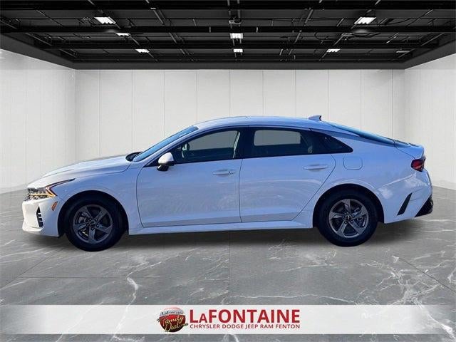 LaFontaine CDJR of Fenton is proud to offer this good-looking 2023 Kia K5 an absolutely great-looking Sedan with the following Features: 4-Wheel Disc Brakes, 6 Speakers, ABS brakes, Air Conditioning, Alloy wheels, AM/FM radio, Auto High-beam Headlights, Automatic temperature control, Brake assist, Bumpers: body-color, Carpeted Floor Mats, Cloth Seat Trim, Delay-off headlights, Driver door bin, Driver vanity mirror, Dual front impact airbags, Dual front side impact airbags, Electronic Stability Control, Four wheel independent suspension, Front anti-roll bar, Front Bucket Seats, Front Center Armrest, Front dual zone A/C, Front reading lights, Fully automatic headlights, Heated door mirrors, Illuminated entry, Knee airbag, Low tire pressure warning, Occupant sensing airbag, Outside temperature display, Overhead airbag, Overhead console, Panic alarm, Passenger door bin, Passenger vanity mirror, Power door mirrors, Power steering, Power windows, Radio data system, Radio: AM/FM/MP3 Audio System, Rear anti-roll bar, Rear seat center armrest, Rear side impact airbag, Rear window defroster, Remote keyless entry, Security system, Speed control, Speed-sensing steering, Split folding rear seat, Steering wheel mounted audio controls, Tachometer, Telescoping steering wheel, Tilt steering wheel, Traction control, Trip computer, Variably intermittent wipers, and Wheels: 16 Gray Alloy.